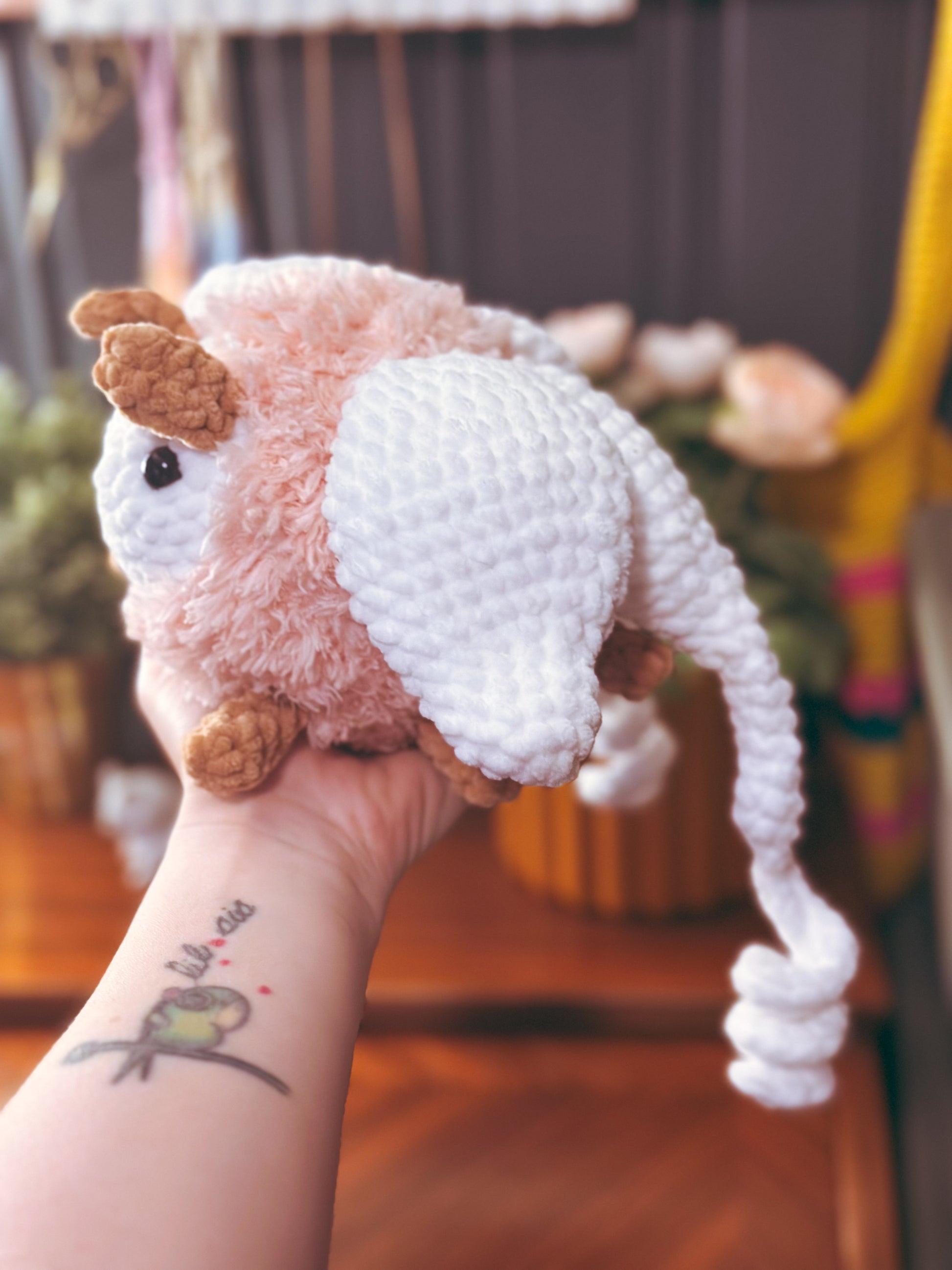Handmade with ultra-soft yarn and lots of love, this cozy little moth features floppy wings and the perfect squishy shape for cuddling, displaying, or keeping you company during late-night crafting sessions.
